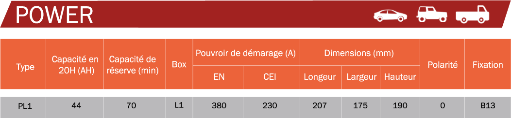 La gamme est conçue utilisant des dernières technologies pour les voitures à puissance modérée. La gamme POWER offre une qualité élevée et stable combinée à la fiabilité. Un vaste choix de batteries est la solution optimale pour les voitures particulières, les camionnettes, les petits véhicules de livraison et les fourgons.