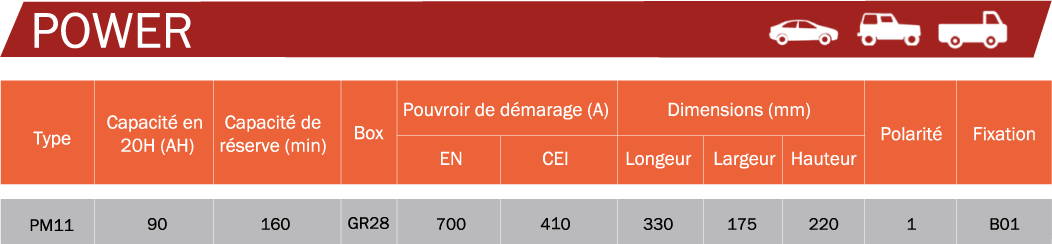 La gamme est conçue utilisant des dernières technologies pour les voitures à puissance modérée. La gamme POWER offre une qualité élevée et stable combinée à la fiabilité. Un vaste choix de batteries est la solution optimale pour les voitures particulières, les camionnettes, les petits véhicules de livraison et les fourgons.